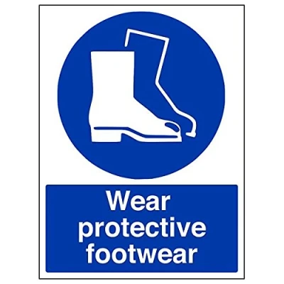 Helps to fulfil legal obligations to remind staff and visitors to wear the appropriate PPE when required to ensure personal safety as per Health and Safety (Safety Signs & Signals) Regulations 1996 Conforms to EN ISO 7010:2012 - Mandatory Signs feature a round symbol with a blue background of at least 50% of the total sign area, with a white pictogram and text Portrait Orientation. Sign reads "Wear Protective Footwear" Highly durable Self Adhesive Vinyl material and screen printed message will stand the test of time Sign measures 300 x 400mm. Self Adhesive material will adhere securely to most surfaces