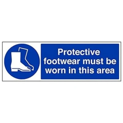 Helps to fulfil legal obligations to remind staff and visitors to wear the appropriate PPE when required to ensure personal safety as per Health and Safety (Safety Signs & Signals) Regulations 1996 Conforms to EN ISO 7010:2012 - Mandatory Signs feature a round symbol with a blue background of at least 50% of the total sign area, with a white pictogram and text Landscape Orientation. Sign reads "Protective Footwear Must Be Worn In This Area" Highly durable 1mm plastic material and screen printed message will stand the test of time Sign measures 600 x 200mm.