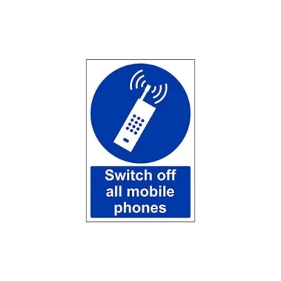 Helps to fulfil legal obligations to advise employees and visitors of specific actions and behaviour which must be adhered to in order to ensure personal safety as per Health and Safety (Safety Signs & Signals) Regulations 1996 Conforms to EN ISO 7010:2012 - Mandatory Signs feature a round symbol with a blue background of at least 50% of the total sign area, with a white pictogram and text Portrait Orientation. Sign reads "Switch Off All Mobile Phones" Highly durable 1mm plastic material and screen printed message will stand the test of time Sign measures 200 x 300mm.