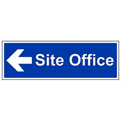 Helps to fulfil legal obligations to advise employees and visitors of specific actions and behaviour which must be adhered to in order to ensure personal safety as per Health and Safety (Safety Signs & Signals) Regulations 1996 Conforms to EN ISO 7010:2012 - Mandatory Signs feature a round symbol with a blue background of at least 50% of the total sign area, with a white pictogram and text Landscape Orientation. Sign reads "Site Office" Highly durable Self Adhesive Vinyl material and screen printed message will stand the test of time Sign measures 450 x 150mm. Self Adhesive material will adhere securely to most surfaces