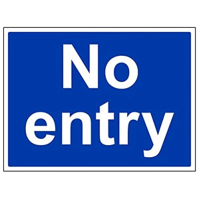 Helps to fulfil legal obligations to advise employees and visitors of specific actions and behaviour which must be adhered to in order to ensure personal safety as per Health and Safety (Safety Signs & Signals) Regulations 1996 Conforms to EN ISO 7010:2012 - Mandatory Signs feature a round symbol with a blue background of at least 50% of the total sign area, with a white pictogram and text Landscape Orientation. Sign reads "No Entry" Highly durable Self Adhesive Vinyl material and screen printed message will stand the test of time Sign measures 400 x 300mm. Self Adhesive material will adhere securely to most surfaces