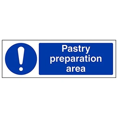 Helps to fulfil legal obligations to remind staff and visitors to wear the appropriate PPE in catering environments to ensure personal safety and maintain hygiene levels Conforms to EN ISO 7010:2012 - Mandatory Signs feature a round symbol with a blue background of at least 50% of the total sign area, with a white pictogram and text Landscape Orientation. Sign reads "Pastry Preparation Area" Highly durable 1mm plastic material and screen printed message will stand the test of time Sign measures 300 x 100mm.