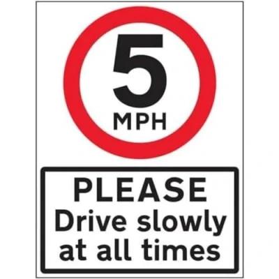 V Safety 5 MPH Please Drive Slowly 600x800mm Class RA1 Reflective 3mm Aluminium Composite With Anti Graffiti Coating & Fixing Channel Sign