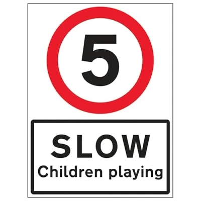 V Safety 5 MPH Slow Children Playing 450 x 600 mm 3mm Reflective Aluminium Composite Sign