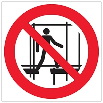 Clearly displays prohibited and potentially dangerous actions which employees and visitors must avoid in the interests of health and safety as per Health and Safety (Safety Signs & Signals) Regulations 1996 Conforms to EN ISO 7010:2012 - Prohibition signs feature a red circular symbol of at least 35% of the total sign area, on a white background, with a black pictogram Square Orientation. Sign features ISO compliant Keep Off Scaffolding Logo Highly durable 1mm plastic material and screen printed message will stand the test of time Sign measures 400 x 400mm.