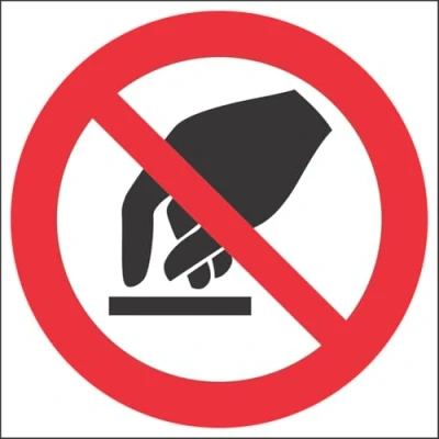 Clearly displays prohibited and potentially dangerous actions which employees and visitors must avoid in the interests of health and safety as per Health and Safety (Safety Signs & Signals) Regulations 1996 Conforms to EN ISO 7010:2012 - Prohibition signs feature a red circular symbol of at least 35% of the total sign area, on a white background, with a black pictogram Square Orientation. Sign features ISO compliant Do Not Touch Logo Highly durable 1mm plastic material and screen printed message will stand the test of time Sign measures 400 x 400mm.