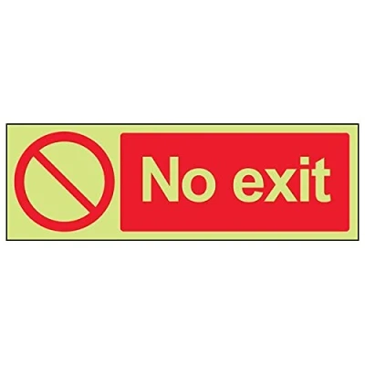 Clearly displays prohibited and potentially dangerous actions which employees and visitors must avoid in the interests of health and safety as per Health and Safety (Safety Signs & Signals) Regulations 1996 Conforms to EN ISO 7010:2012 - Prohibition signs feature a red circular symbol of at least 35% of the total sign area, on a white background, with a black pictogram Landscape Orientation. Sign reads "No Exit" Highly durable Glow In The Dark 1mm plastic material and screen printed message will stand the test of time Sign measures 300 x 100mm.
