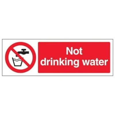 Clearly displays prohibited and potentially dangerous actions which employees and visitors must avoid in the interests of health and safety as per Health and Safety (Safety Signs & Signals) Regulations 1996 Conforms to EN ISO 7010:2012 - Prohibition signs feature a red circular symbol of at least 35% of the total sign area, on a white background, with a black pictogram Landscape Orientation. Sign reads "Not Drinking Water" Highly durable 1mm plastic material and screen printed message will stand the test of time Sign measures 300 x 100mm.