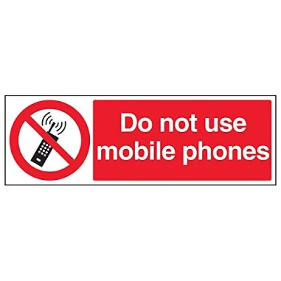 Clearly displays prohibited and potentially dangerous actions which employees and visitors must avoid in the interests of health and safety as per Health and Safety (Safety Signs & Signals) Regulations 1996 Conforms to EN ISO 7010:2012 - Prohibition signs feature a red circular symbol of at least 35% of the total sign area, on a white background, with a black pictogram Landscape Orientation. Sign reads "Do Not Use Mobile Phones" Highly durable Self Adhesive Vinyl material and screen printed message will stand the test of time Sign measures 450 x 150mm. Self Adhesive material will adhere securely to most surfaces