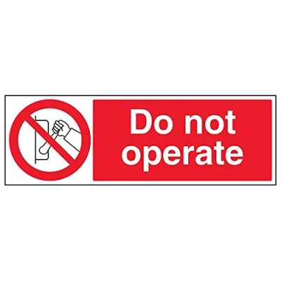 Clearly displays prohibited and potentially dangerous actions which employees and visitors must avoid in the interests of health and safety as per Health and Safety (Safety Signs & Signals) Regulations 1996 Conforms to EN ISO 7010:2012 - Prohibition signs feature a red circular symbol of at least 35% of the total sign area, on a white background, with a black pictogram Landscape Orientation. Sign reads "Do Not Operate" Highly durable Self Adhesive Vinyl material and screen printed message will stand the test of time Sign measures 600 x 200mm. Self Adhesive material will adhere securely to most surfaces