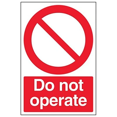 Clearly displays prohibited and potentially dangerous actions which employees and visitors must avoid in the interests of health and safety as per Health and Safety (Safety Signs & Signals) Regulations 1996 Conforms to EN ISO 7010:2012 - Prohibition signs feature a red circular symbol of at least 35% of the total sign area, on a white background, with a black pictogram Portrait Orientation. Sign reads "Do Not Operate" Highly durable 1mm plastic material and screen printed message will stand the test of time Sign measures 200 x 300mm.