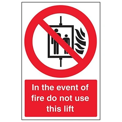 Clearly displays prohibited and potentially dangerous actions which employees and visitors must avoid in the interests of health and safety as per Health and Safety (Safety Signs & Signals) Regulations 1996 Conforms to EN ISO 7010:2012 - Prohibition signs feature a red circular symbol of at least 35% of the total sign area, on a white background, with a black pictogram Portrait Orientation. Sign reads "In The Event Of Fire Do Not Use This Lift" Highly durable 1mm plastic material and screen printed message will stand the test of time Sign measures 200 x 300mm.