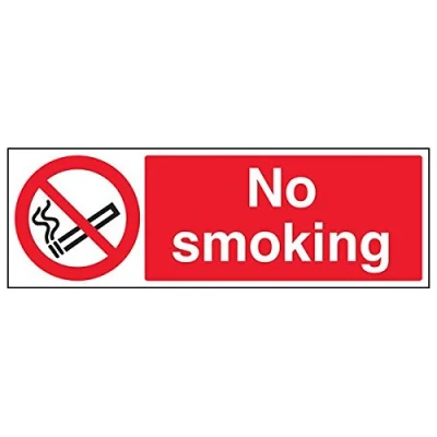Clearly establishes areas where smoking is prohibited to employees and visitors. Complies with the Smoke-free (Signs) Regulations 2007 Conforms to EN ISO 7010:2012 - Prohibition signs feature a red circular symbol of at least 35% of the total sign area, on a white background, with a black pictogram Landscape Orientation. Sign reads "No Smoking" Highly durable Self Adhesive Vinyl material and screen printed message will stand the test of time Sign measures 450 x 150mm. Self Adhesive material will adhere securely to most surfaces