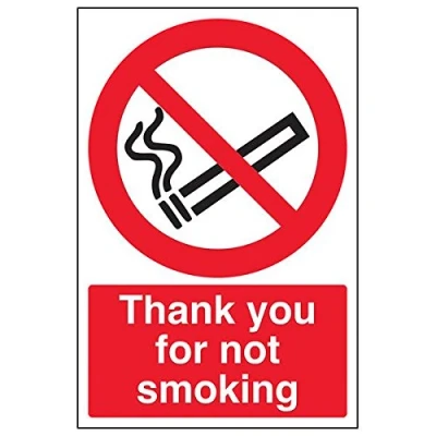 Clearly establishes areas where smoking is prohibited to employees and visitors. Complies with the Smoke-free (Signs) Regulations 2007 Conforms to EN ISO 7010:2012 - Prohibition signs feature a red circular symbol of at least 35% of the total sign area, on a white background, with a black pictogram Portrait Orientation. Sign reads "Thank You For Not Smoking" Highly durable Self Adhesive Vinyl material and screen printed message will stand the test of time Sign measures 200 x 300mm. Self Adhesive material will adhere securely to most surfaces