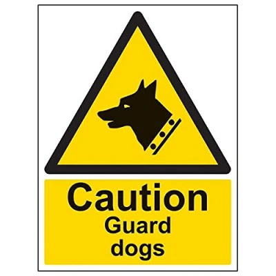 Helps to fulfil legal obligations to inform employees, visitors and the general public of potential hazards as per Health and Safety (Safety Signs & Signals) Regulations 1996 Conforms to EN ISO 7010:2012 - Warning signs feature a triangular symbol with a black pictogram and yellow background occupying at least 50% of the total sign area Portrait Orientation. Sign reads "Caution. Guard Dogs" Highly durable Self Adhesive Vinyl material and screen printed message will stand the test of time Sign measures 300 x 400mm. Self Adhesive material will adhere securely to most surfaces