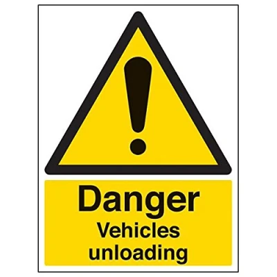 Helps to fulfil legal obligations to inform employees, visitors and the general public of potential hazards as per Health and Safety (Safety Signs & Signals) Regulations 1996 Conforms to EN ISO 7010:2012 - Warning signs feature a triangular symbol with a black pictogram and yellow background occupying at least 50% of the total sign area Portrait Orientation. Sign reads "Danger. Vehicles Unloading" Highly durable Self Adhesive Vinyl material and screen printed message will stand the test of time Sign measures 300 x 400mm. Self Adhesive material will adhere securely to most surfaces