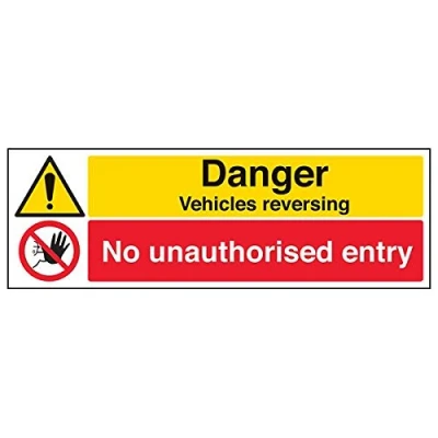 Helps to fulfil legal obligations to inform employees, visitors and the general public of potential hazards as per Health and Safety (Safety Signs & Signals) Regulations 1996 Conforms to EN ISO 7010:2012 - Warning signs feature a triangular symbol with a black pictogram and yellow background occupying at least 50% of the total sign area Landscape Orientation. Sign reads "Danger. Vehicles Reversing. No Unauthorised Entry" Highly durable Self Adhesive Vinyl material and screen printed message will stand the test of time Sign measures 450 x 150mm. Self Adhesive material will adhere securely to most surfaces