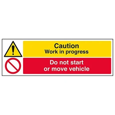 Helps to fulfil legal obligations to inform employees, visitors and the general public of potential hazards as per Health and Safety (Safety Signs & Signals) Regulations 1996 Conforms to EN ISO 7010:2012 - Warning signs feature a triangular symbol with a black pictogram and yellow background occupying at least 50% of the total sign area Landscape Orientation. Sign reads "Caution. Work In Progress. Do Not Start Or Move Vehicle" Highly durable Self Adhesive Vinyl material and screen printed message will stand the test of time Sign measures 450 x 150mm. Self Adhesive material will adhere securely to most surfaces