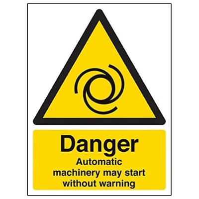 Helps to fulfil legal obligations to inform employees, visitors and the general public of potential hazards as per Health and Safety (Safety Signs & Signals) Regulations 1996 Conforms to EN ISO 7010:2012 - Warning signs feature a triangular symbol with a black pictogram and yellow background occupying at least 50% of the total sign area Portrait Orientation. Sign reads "Danger. Automatic Machinery May Start Without Warning" Highly durable Self Adhesive Vinyl material and screen printed message will stand the test of time Sign measures 150 x 200mm. Self Adhesive material will adhere securely to most surfaces