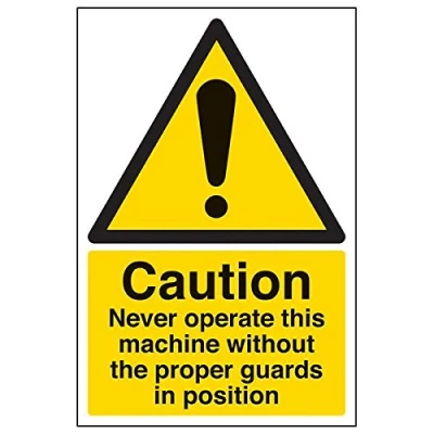 Helps to fulfil legal obligations to inform employees, visitors and the general public of potential hazards as per Health and Safety (Safety Signs & Signals) Regulations 1996 Conforms to EN ISO 7010:2012 - Warning signs feature a triangular symbol with a black pictogram and yellow background occupying at least 50% of the total sign area Portrait Orientation. Sign reads "Caution. Never Operate This Machine Without The Proper Guards In Position" Highly durable 1mm plastic material and screen printed message will stand the test of time Sign measures 200 x 300mm.