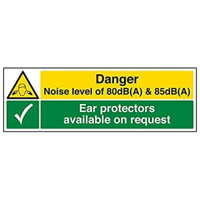 Helps to fulfil legal obligations to inform employees, visitors and the general public of potential hazards as per Health and Safety (Safety Signs & Signals) Regulations 1996 Conforms to EN ISO 7010:2012 - Warning signs feature a triangular symbol with a black pictogram and yellow background occupying at least 50% of the total sign area Landscape Orientation. Sign reads "Noise Hazard. Ear Protectors Available On Request" Highly durable Self Adhesive Vinyl material and screen printed message will stand the test of time Sign measures 450 x 150mm. Self Adhesive material will adhere securely to most surfaces