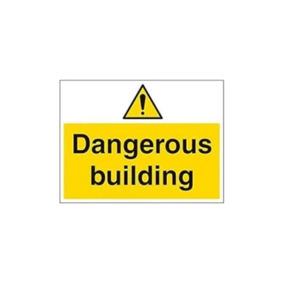 Helps to fulfil legal obligations to inform employees, visitors and the general public of potential hazards as per Health and Safety (Safety Signs & Signals) Regulations 1996 Conforms to EN ISO 7010:2012 - Warning signs feature a triangular symbol with a black pictogram and yellow background occupying at least 50% of the total sign area Landscape Orientation. Sign reads "Dangerous Building" Highly durable 1mm plastic material and screen printed message will stand the test of time Sign measures 400 x 300mm.