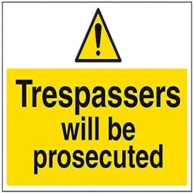 Helps to fulfil legal obligations to inform employees, visitors and the general public of potential hazards as per Health and Safety (Safety Signs & Signals) Regulations 1996 Conforms to EN ISO 7010:2012 - Warning signs feature a triangular symbol with a black pictogram and yellow background occupying at least 50% of the total sign area Landscape Orientation. Sign reads "Trespassers Will Be Prosecuted" Highly durable Self Adhesive Vinyl material and screen printed message will stand the test of time Sign measures 400 x 300mm. Self Adhesive material will adhere securely to most surfaces