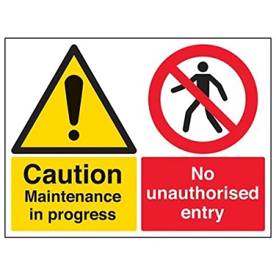 Helps to fulfil legal obligations to inform employees, visitors and the general public of potential hazards as per Health and Safety (Safety Signs & Signals) Regulations 1996 Conforms to EN ISO 7010:2012 - Warning signs feature a triangular symbol with a black pictogram and yellow background occupying at least 50% of the total sign area Landscape Orientation. Sign reads "Caution. Maintenance In Progress. No Unauthorised Entry" Highly durable 1mm plastic material and screen printed message will stand the test of time Sign measures 400 x 300mm.