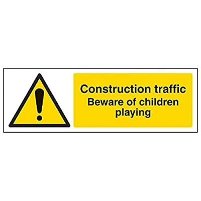 Helps to fulfil legal obligations to inform employees, visitors and the general public of potential hazards as per Health and Safety (Safety Signs & Signals) Regulations 1996 Conforms to EN ISO 7010:2012 - Warning signs feature a triangular symbol with a black pictogram and yellow background occupying at least 50% of the total sign area Landscape Orientation. Sign reads "Construction Traffic. Beware Of Children Playing" Highly durable 1mm plastic material and screen printed message will stand the test of time Sign measures 300 x 100mm.
