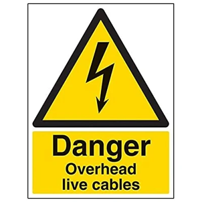 Helps to fulfil legal obligations to inform employees, visitors and the general public of potential hazards as per Health and Safety (Safety Signs & Signals) Regulations 1996 Conforms to EN ISO 7010:2012 - Warning signs feature a triangular symbol with a black pictogram and yellow background occupying at least 50% of the total sign area Portrait Orientation. Sign reads "Danger. Overhead Live Cables" Highly durable Self Adhesive Vinyl material and screen printed message will stand the test of time Sign measures 300 x 400mm. Self Adhesive material will adhere securely to most surfaces