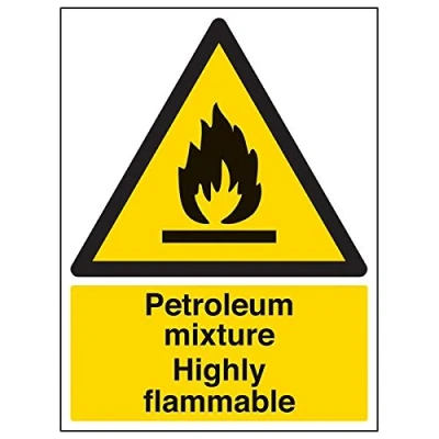 Helps to fulfil legal obligations to inform employees, visitors and the general public of potential hazards as per Health and Safety (Safety Signs & Signals) Regulations 1996 Conforms to EN ISO 7010:2012 - Warning signs feature a triangular symbol with a black pictogram and yellow background occupying at least 50% of the total sign area Portrait Orientation. Sign reads "Petroleum Mixture. Highly Flammable" Highly durable Self Adhesive Vinyl material and screen printed message will stand the test of time Sign measures 300 x 400mm. Self Adhesive material will adhere securely to most surfaces