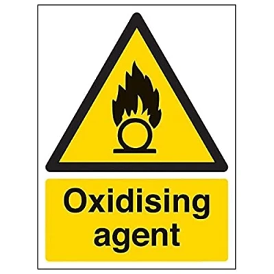 Helps to fulfil legal obligations to inform employees, visitors and the general public of potential hazards as per Health and Safety (Safety Signs & Signals) Regulations 1996 Conforms to EN ISO 7010:2012 - Warning signs feature a triangular symbol with a black pictogram and yellow background occupying at least 50% of the total sign area Portrait Orientation. Sign reads "Oxidising Agent" Highly durable Self Adhesive Vinyl material and screen printed message will stand the test of time Sign measures 150 x 200mm. Self Adhesive material will adhere securely to most surfaces