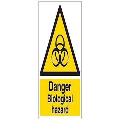 Helps to fulfil legal obligations to inform employees, visitors and the general public of potential hazards as per Health and Safety (Safety Signs & Signals) Regulations 1996 Conforms to EN ISO 7010:2012 - Warning signs feature a triangular symbol with a black pictogram and yellow background occupying at least 50% of the total sign area Portrait Orientation. Sign reads "Danger. Biological Hazard" Highly durable Self Adhesive Vinyl material and screen printed message will stand the test of time Sign measures 150 x 200mm. Self Adhesive material will adhere securely to most surfaces