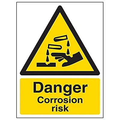 Helps to fulfil legal obligations to inform employees, visitors and the general public of potential hazards as per Health and Safety (Safety Signs & Signals) Regulations 1996 Conforms to EN ISO 7010:2012 - Warning signs feature a triangular symbol with a black pictogram and yellow background occupying at least 50% of the total sign area Portrait Orientation. Sign reads "Danger. Corrosion Risk" Highly durable 1mm plastic material and screen printed message will stand the test of time Sign measures 150 x 200mm.
