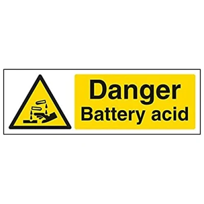 Helps to fulfil legal obligations to inform employees, visitors and the general public of potential hazards as per Health and Safety (Safety Signs & Signals) Regulations 1996 Conforms to EN ISO 7010:2012 - Warning signs feature a triangular symbol with a black pictogram and yellow background occupying at least 50% of the total sign area Landscape Orientation. Sign reads "Danger. Battery Acid" Highly durable 1mm plastic material and screen printed message will stand the test of time Sign measures 300 x 100mm.