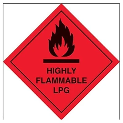 V Safety 6D005AF S Highly Flammable LPG Warning Hazard Diamond Sign Square 100mm x Self Adhesive Vinyl, Black/Red