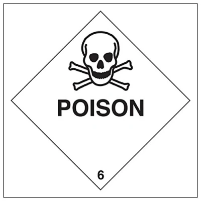 Helps to fulfil legal obligations to inform employees, visitors and the general public of potential hazards as per Health and Safety (Safety Signs & Signals) Regulations 1996 Conforms to EN ISO 7010:2012 - Warning signs feature a triangular symbol with a black pictogram and yellow background occupying at least 50% of the total sign area Square Orientation. Sign reads "Poison" Highly durable Self Adhesive Vinyl material and screen printed message will stand the test of time Sign measures 200 x 200mm. Self Adhesive material will adhere securely to most surfaces