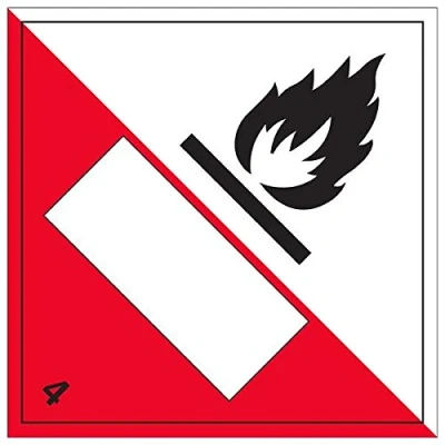 Helps to fulfil legal obligations to inform employees, visitors and the general public of potential hazards as per Health and Safety (Safety Signs & Signals) Regulations 1996 Conforms to EN ISO 7010:2012 - Warning signs feature a triangular symbol with a black pictogram and yellow background occupying at least 50% of the total sign area Square Orientation. Sign features ISO compliant Spontaneously Combustible 4 UN Substance Numbering Hazard Label Highly durable Self Adhesive Vinyl material and screen printed message will stand the test of time Sign measures 250 x 250mm. Self Adhesive material will adhere securely to most surfaces