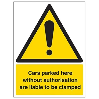 Helps to fulfil legal obligations to inform employees, visitors and the general public of potential hazards as per Health and Safety (Safety Signs & Signals) Regulations 1996 Conforms to EN ISO 7010:2012 - Warning signs feature a triangular symbol with a black pictogram and yellow background occupying at least 50% of the total sign area Portrait Orientation. Sign reads "Cars Parked Here Without Authorisation Will Be Clamped" Highly durable Self Adhesive Vinyl material and screen printed message will stand the test of time Sign measures 300 x 400mm. Self Adhesive material will adhere securely to most surfaces