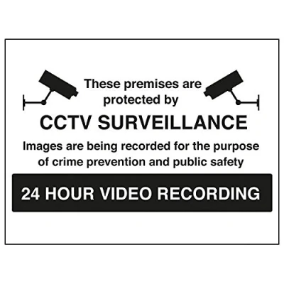Helps to fulfil legal obligations to inform employees, visitors and the general public of potential hazards as per Health and Safety (Safety Signs & Signals) Regulations 1996 Conforms to EN ISO 7010:2012 - Warning signs feature a triangular symbol with a black pictogram and yellow background occupying at least 50% of the total sign area Landscape Orientation. Sign reads "These Premises Are Protected By CCTV Surveillance. Images Are Being Recorded For The Purpose Of Crime Prevention And Public Safety. 24 Hour Video Recording" Highly durable 1mm plastic material and screen printed message will stand the test of time Sign measures 400 x 300mm.