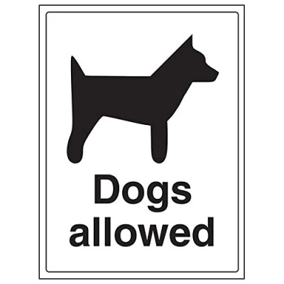 Clearly displays easily understood message, can be used in a number of locations, as per Health and Safety (Safety Signs & Signals) Regulations 1996 Conforms to EN ISO 7010:2012 Portrait Orientation. Sign reads "Dogs Allowed" Highly durable Self Adhesive Vinyl material and screen printed message will stand the test of time Sign measures 300 x 400mm. Self Adhesive material will adhere securely to most surfaces