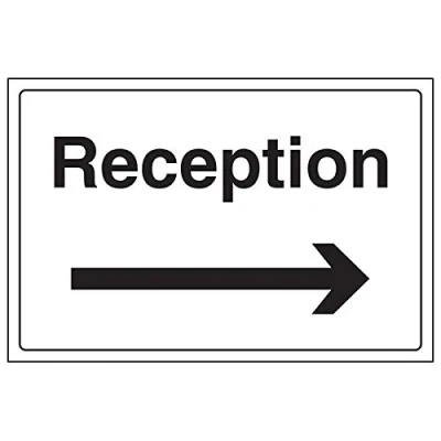 Clearly displays easily understood message, can be used in a number of locations, as per Health and Safety (Safety Signs & Signals) Regulations 1996 Conforms to EN ISO 7010:2012 Landscape Orientation. Sign reads "Reception" Highly durable Self Adhesive Vinyl material and screen printed message will stand the test of time Sign measures 300 x 200mm. Self Adhesive material will adhere securely to most surfaces