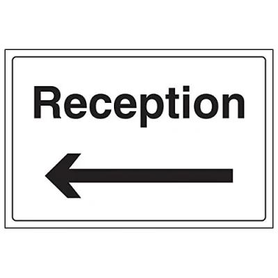 Clearly displays easily understood message, can be used in a number of locations, as per Health and Safety (Safety Signs & Signals) Regulations 1996 Conforms to EN ISO 7010:2012 Landscape Orientation. Sign reads "Reception" Highly durable Self Adhesive Vinyl material and screen printed message will stand the test of time Sign measures 300 x 200mm. Self Adhesive material will adhere securely to most surfaces