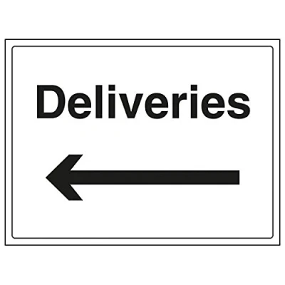 V Safety 72036BF R'Deliveries/Arrow Left' Sign, Landscape, 400 mm x 300 (Pack of 3)
