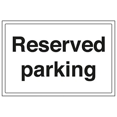 Helps to fulfil legal obligations to advise the public of actions or restrictions concerning parking, as per Health and Safety (Safety Signs & Signals) Regulations 1996 Conforms to EN ISO 7010:2012 Landscape Orientation. Sign reads "Reserved Parking" Highly durable 1mm plastic material and screen printed message will stand the test of time Sign measures 300 x 200mm.