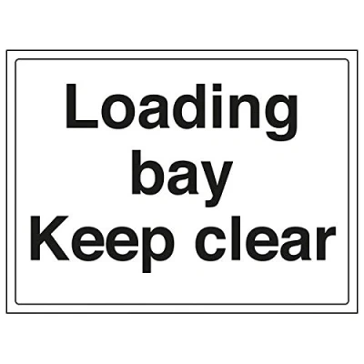 Helps to fulfil legal obligations to advise the public of actions or restrictions concerning parking, as per Health and Safety (Safety Signs & Signals) Regulations 1996 Conforms to EN ISO 7010:2012 Landscape Orientation. Sign reads "Loading Bay. Keep Clear" Highly durable Self Adhesive Vinyl material and screen printed message will stand the test of time Sign measures 400 x 300mm. Self Adhesive material will adhere securely to most surfaces