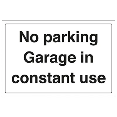 Helps to fulfil legal obligations to advise the public of actions or restrictions concerning parking, as per Health and Safety (Safety Signs & Signals) Regulations 1996 Conforms to EN ISO 7010:2012 Landscape Orientation. Sign reads "No Parking. Garage In Constant Use" Highly durable 1mm plastic material and screen printed message will stand the test of time Sign measures 300 x 200mm.