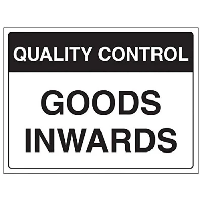 Communicates relevant quality control measures on your site to employees Conforms to EN ISO 7010:2012 Landscape Orientation. Sign reads "Quality Control. Goods Inwards" Highly durable Self Adhesive Vinyl material and screen printed message will stand the test of time Sign measures 400 x 300mm. Self Adhesive material will adhere securely to most surfaces