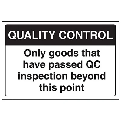 Communicates relevant quality control measures on your site to employees Conforms to EN ISO 7010:2012 Landscape Orientation. Sign reads "Quality Control. Only Goods That Have Passed QC Inspection Beyond This Point" Highly durable 1mm plastic material and screen printed message will stand the test of time Sign measures 300 x 200mm.