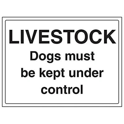 Provides essential information of the dangers on private properties to ensure personal safety as per Health and Safety (Safety Signs & Signals) Regulations 1996 Conforms to EN ISO 7010:2012 Landscape Orientation. Sign reads "Livestock. Dogs Must Be Kept Under Control" Highly durable 1mm plastic material and screen printed message will stand the test of time Sign measures 400 x 300mm.
